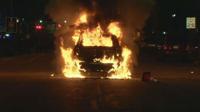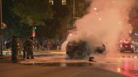 A Madison police squad car was set on fire during violent protests in Madison on Saturday night.